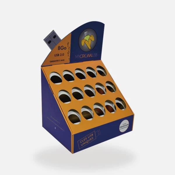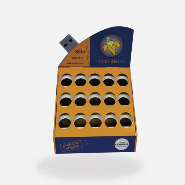 This promotional counter displays is printed with 4C colors, and surface lamination is high glossy lamination, make the USB display looks pretty amazing, help your client to pick up your USB at first glance.